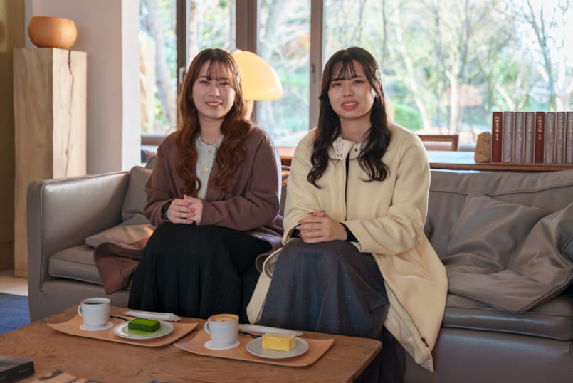 次に訪れたのは川棚グランドホテルお多福の中にあるカフェ&ラウンジ「楓山文庫」です。自然あふれる静寂の空間に、本とアートに囲まれながら「私だけの特別な時間」を過ごすことができます。